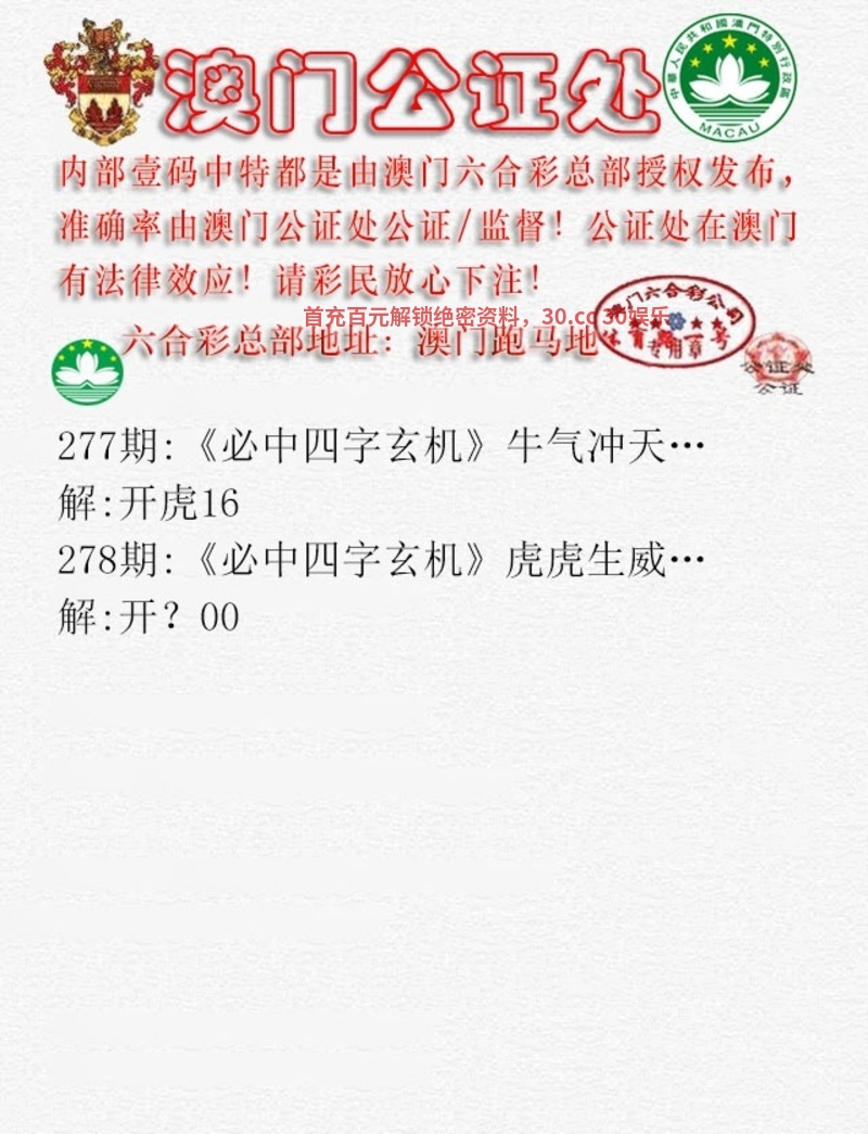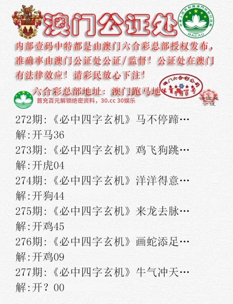 公证处四字玄机:第277期{开:虎16中} 【牛气冲天】 综合解肖:虎猴马牛狗猪 |